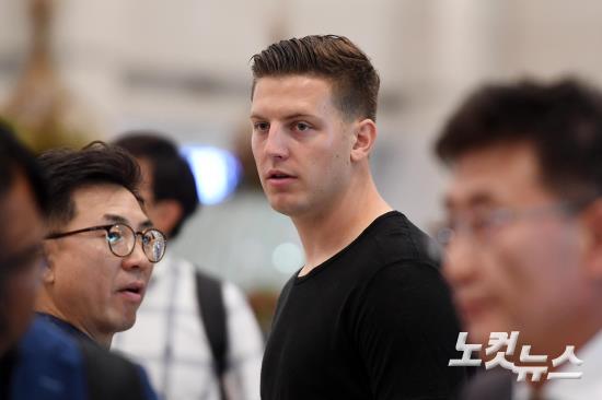 토트넘 수비수 케빈 비머가 14일 오후 인천공항에서 손흥민을 기다리고 있다.