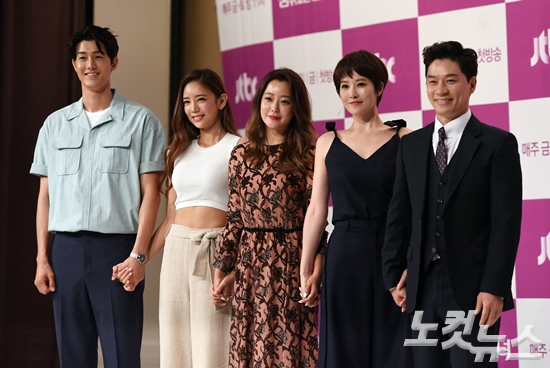 배우 이기우, 이태임, 김희선, 김선아, 정상훈이 14일 오후 서울 영등포 타임스퀘어에서 열린 JTBC 금토드라마 '품위 있는 그녀' 제작발표회에 참석해 포즈를 취하고 있다. (사진=황진환 기자)