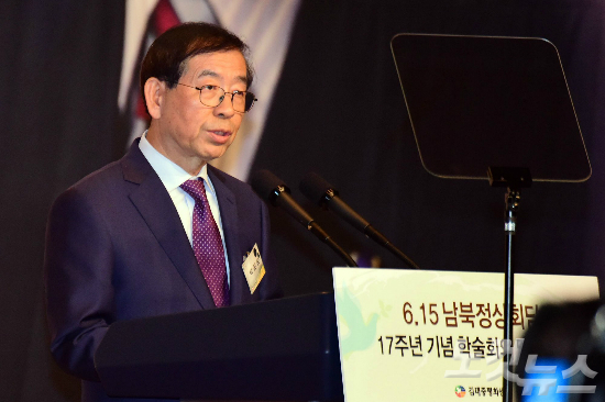 박원순 서울시장이 15일 오후 여의도 63빌딩에서 열린 6.15 남북정상회담 17주년 기념 학술회의 및 기념식에서 개회사를 하고 있다. (사진=윤창원 기자)