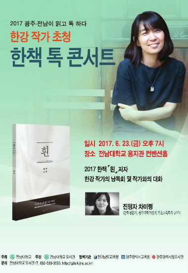 전남대 정병석 총장은 "한강 작가의 소설 흰은 더렵혀지지 않는 어떤 흰 것에 관한 이야기로 읽는 이들의 마음을 치유시켜준다"며 "이번 한책 톡 콘서트를 통해 올해 시·도민이 함께 읽고 이야기할 책에 대한 이해를 높이고 공감의 기회가 되기를 바란다"고 말했다.