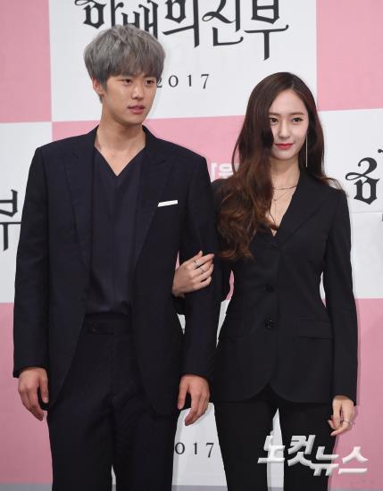 배우 공명, 정수정(왼쪽부터)이 27일 오후 서울 강남구 임피리얼 팰리스 서울에서 열린 tVN 월화 드라마 하백의 신부 2017 제작발표회에 참석해 포즈를 취하고 있다.