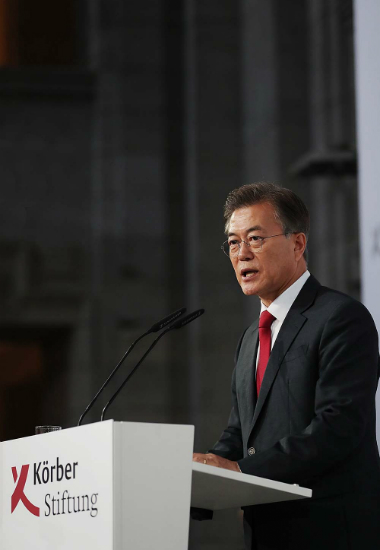 독일 베를린에서 연설하는 문재인 대통령 (사진=청와대 제공)