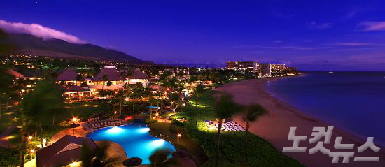 쉐라톤 마우이는 밤이면 오션뷰와 더불어 조명을 밝힌 리조트 건물로 더욱 화려한 뷰를 감상할 수 있다. (사진=허니문리조트 제공)