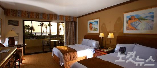 하와이 왕실에서 영감을 얻은 소품들로 객실을 꾸며진 쉐라톤 마우이 객실. (사진=허니문리조트 제공)