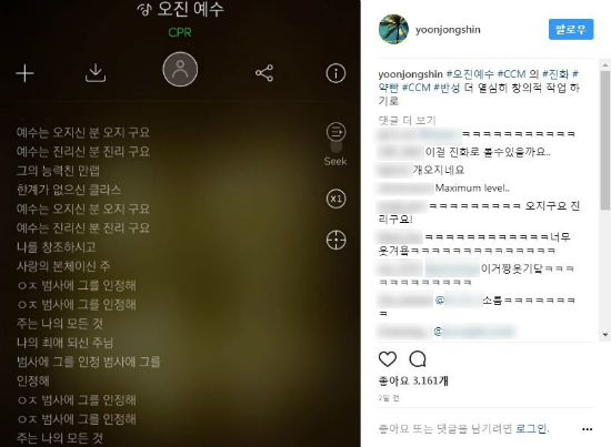 작곡가 겸 가수 윤종신은 지난 11일 자신의 인스타그램에 CPR의 '오진예수' 가사 화면 캡처 이미지를 #CCM의 #진화 #약빤 #CCM 이라는 해시태그와 함께 올렸다. 그와 함께 #반성, "더 열심히 창의적인 작업 하기로" 라고 덧붙였다.