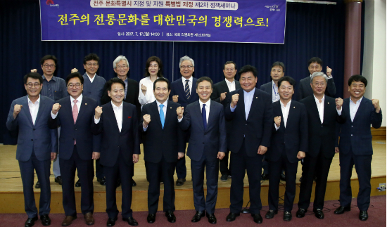 전주시는 17일 국회 의원회관 제1소회의실에서 국회의원과 문화전문가, 입법전문가, 지역발전 전문가 등이 참석한 가운데 '전주문화특별시 지정 및 지원 특별법 제정을 위한 제2차 정책세미나'를 개최하고, 전주문화특별시 지정에 대한 공감대 확산과 나아가야 할 방향에 대한 의견 수렴에 나섰다.