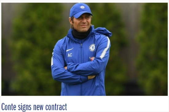 첼시는 19일(한국시간) 구단 홈페이지를 통해 "중국-싱가포르로 이어지는 아시아 투어를 앞두고 콘테 감독과 새로운 2년 계약에 합의했다"고 전했다.