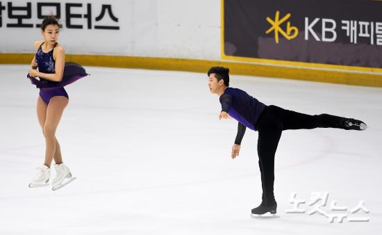 30일 오후 서울 목동아이스링크에서 열린 KB금융 피겨스케이팅 코리아 챌린지 페어스케이팅에 출전한 김규은, 감강찬이 멋진 연기를 펼치고 있다.