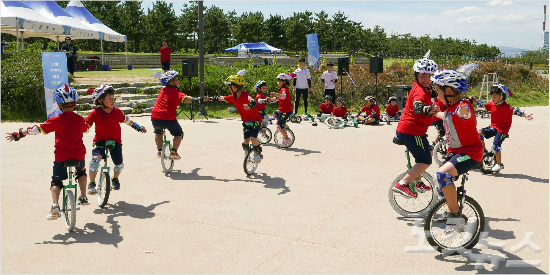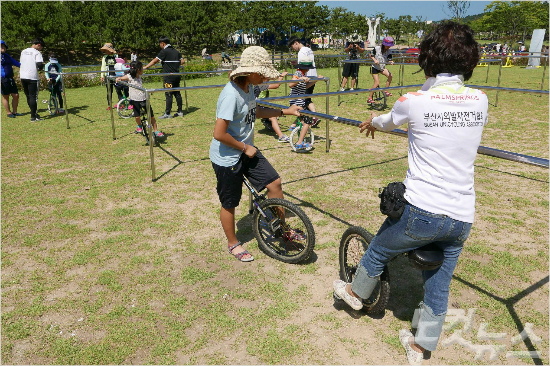 특히 페달이 없는 바람과 돛의 힘만으로 가는 특수 자전거인 바람 자전거와 바퀴가 하나인 외발자전거 체험장으로 피서객들이 몰려들었다.