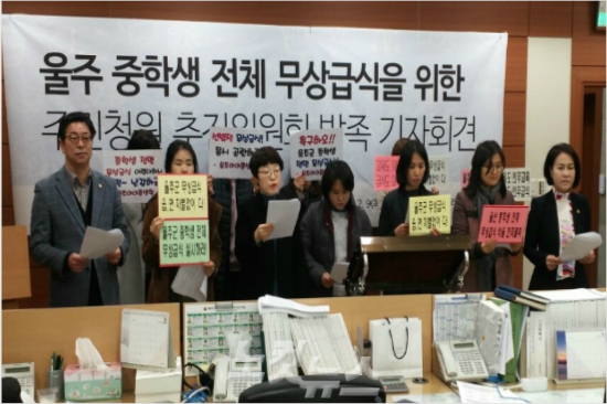 중학교 무상교육에 전면 무상급식이 보편화되고 있지만 울산시는 무상급식을 추진할 의지가 없어 보인다.