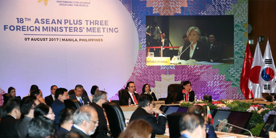 지난 6일 발표된 아세안 10개국 외교장관 명의의 대북 비판 공동성명을 두고 "이 성명이 다양한 회담의 컨셉트가 됐고 각국 장관들이 (이 성명에) 얼마나 엄중한 안보인식이 담겼는지, 북한에 대한 얼마나 강력한 경고인지 후담을 이야기했다"고 말했다.
