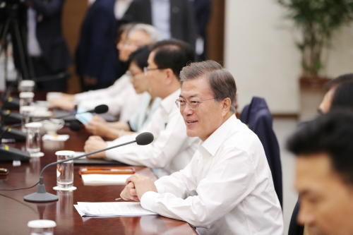 생활물가 관리대책 마련도 당부했다. 문 대통령은 "올 여름은 가뭄과 폭우, 폭염 이어지는 이상 기후로 인해 많은 국민들이 피해를 보고 고통을 겪고 있다"며 "기후 변화로 기상 이변이 자주 발생할 것으로 예측되는 만큼 앞으로 미리 대비할 일은 없는지 각 부처별로 꼼꼼하게 짚어주기 바란다"고 말했다.