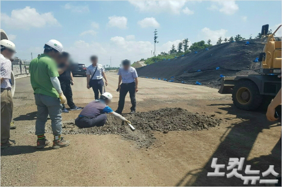 현장 업체 관계자도 "돈을 주고 사오려 해도 골재 자체가 없어 수급이 안됐고, 시간 상으로도 어쩔 수 없었다"며 "제주도에 사전 협의 없이 일부 구간에 돌(규격 미달 골재)을 넣었다"고 말했다.