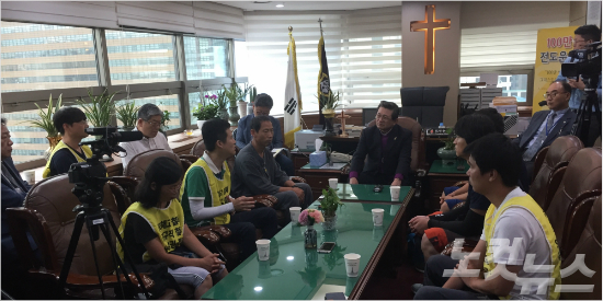 기감은 당초 광화문 정부종합청사 정문 옆에 설치된 비정규직 노동자 농성장을 방문할 예정이었지만, 지난 주 농성장이 철거돼 장소를 감리교본부로 옮겨 노동자들을 만났다.