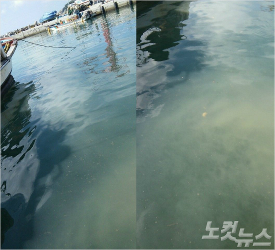부산 기장군 동암마을 앞바다에 인근 힐튼 호텔에서 나온 오폐수가 유입돼 어민들이 분통을 터뜨리고 있다. (사진=부산 기장군 동암어촌계 제공)