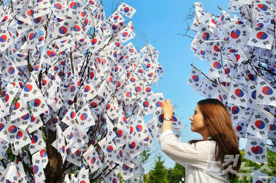 특히 공원 주변에는 태극기 그리기와 페이스 페인팅 등 시민 참여행사와길놀이, 풍물놀이 등이 펼쳐지는 태극 물결 행사가 열려 가족단위 나들이객들이 몰려 광복절의 의미를 되새겼다.