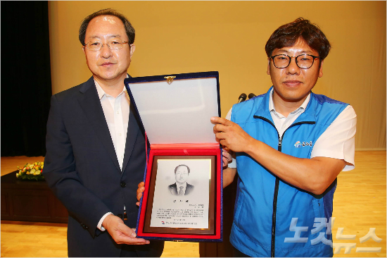 공무원 노조가 역대 도지사 등이 이임할 때 감사패를 전달한 건 이번이 처음인 것으로 알려졌다.