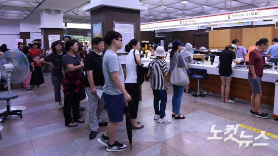 문재인 대통령 기념 우표 판매가 시작된 17일 오전 서울 양천우체국에서 시민들이 문재인 대통령 기념 우표를 사기 위해 줄을 서고 있다.