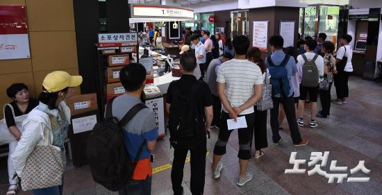 문재인 대통령 기념 우표 판매가 시작된 17일 오전 서울 양천우체국에서 시민들이 문재인 대통령 기념 우표를 사기 위해 줄을 서고 있다.