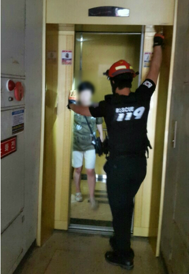 21일 오전 9시 20분쯤 부산 사하구의 한 대단지 아파트에서 정전이 발생해 주민 7명이 1시간 넘게 갇히는 소동이 빚어졌다.(사진=부산소방본부 제공)