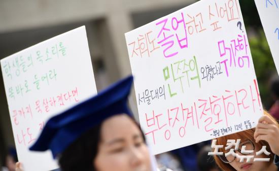 '나도 졸업하고 싶다' 서울대 졸업식의 두 얼굴