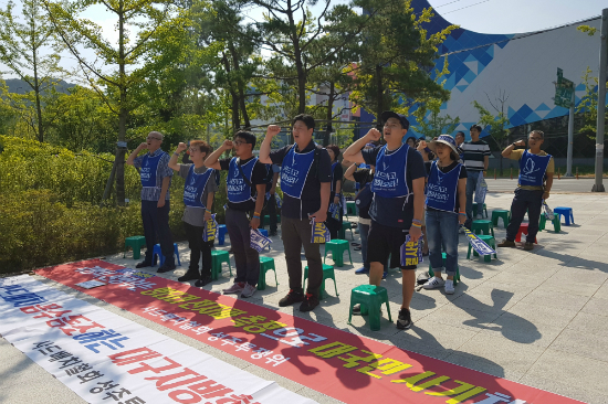 사드배치철회 성주투쟁위와 주민, 시민단체 40여명은 31일 오전 대구지방환경청 앞에서 사드배치에 따른 소규모환경영향평가에 대한 항의집회를 벌였다. (사진=사드배치철회 성주투쟁위원회 제공)