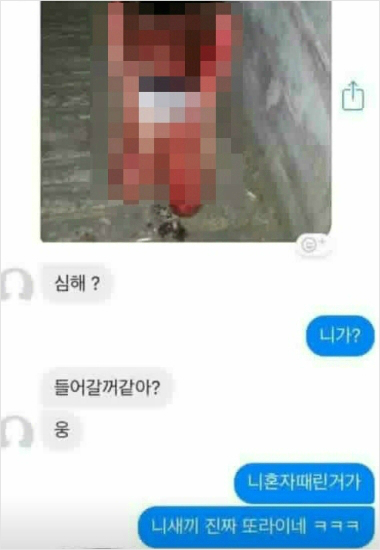 가해학생이 피해학생의 사진을 찍어 공유한 SNS 메세지. (사진=페이스북 캡처)
