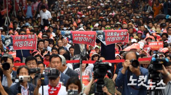 박근혜 석방 촉구하는 자유한국당 장외집회 참가자들