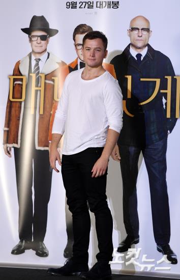 배우 태런 에저튼이 21일 오후 서울 CGV용산아이파크몰에서 열린 영화 '킹스맨-골든서클' 내한기자회견에서 포즈를 취하고 있다.