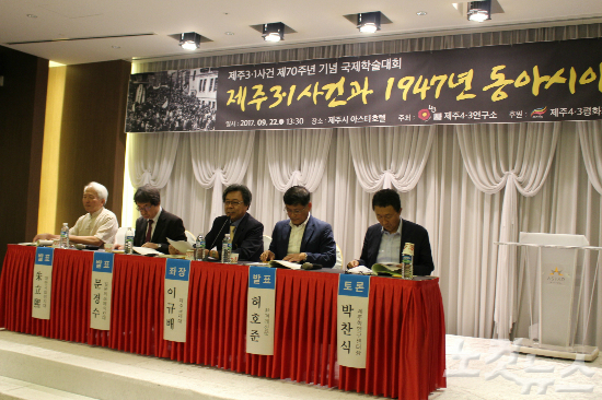 '제주 3·1 사건과 1947년 동아시아'를 주제로 한 국제학술대회가 22일 오후 제주 아스타호텔에서 열린 가운데 미국 책임을 규명하기 위한 국제공조 필요성이 제기됐다. (사진=이인 기자)