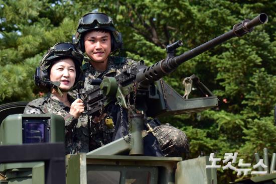 더불어민주당 추미애 대표가 26일 오후 경기도 고양시 9사단 전차대대를 격려 방문해 전차 탑승 체험을 하고 있다.