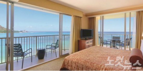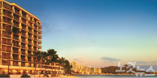와이키키 비치 초입에 위치한 아웃리거 리프 온 더 비치 리조트. 600여 개가 넘는 객실과 다양한 부대시설을 보유하고 있다. (사진=허니문리조트 제공)
