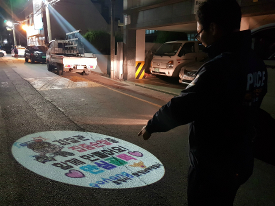 '경찰관 집중 순찰 중, 함께 만들어요 안심골목', '당신 곁을 언제나 경찰관이 지켜줄게요, 안심사랑골목'과 같은 범죄예방 문구 등을 투영해 주민들에게는 심리적 안정을, 범죄자들에게는 경각심을 주기위해 고안됐다.