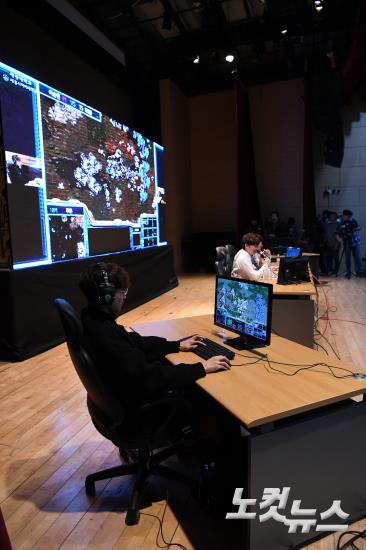 31일 오후 서울 광진구 세종대학교 학생회관에서 열린 '인간 대 인공지능(AI) 스타크래프트 대결'에서 일반인 대표 이승현씨가 인공지능(AI)이 대결을 펼치고 있다.