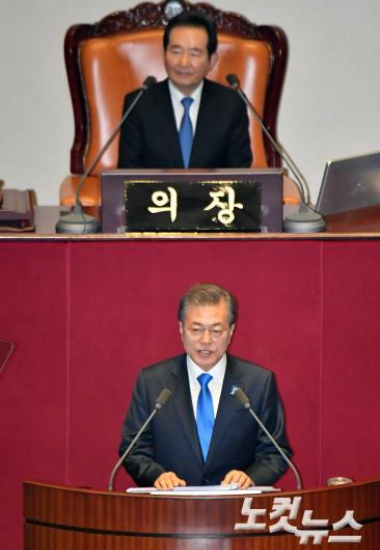 문 대통령은 "보다 공정하고 정의로운 나라는 국민이 요구한 새 정부의 책무"라며 "우리 정치 모두가 적어도 이 책무만큼은 공동의 책무로 여겨달라"고 호소했다.