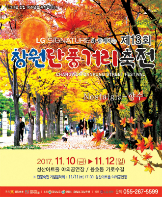 창원예총은 3일 "'LG SIGNATURE와 함께하는 제13회 창원단풍거리축전'이 11월 10일부터 12일까지 성산아트홀 주변과 용호동 가로수길 일원에서 개최된다"고 밝혔다.