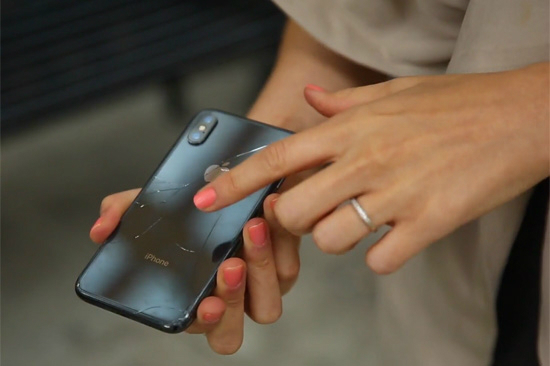 앞뒷면을 모두 유리로 감싼 아이폰X가 충격에 매우 취약하다는 점을 보여준 것,
