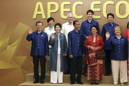베트남 다낭에서 진행되고 있는 APEC 정상회의에 참석한 문재인(앞줄 왼쪽) 대통령과 김정숙 여사. (사진=청와대 제공)