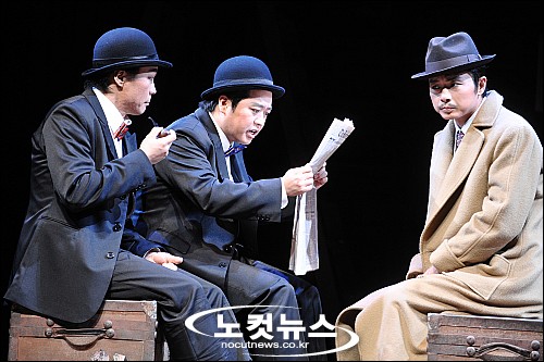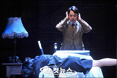 [BestNocut_R]22일 오후 서울 대학로 동숭아트센터 동숭홀에서 열린 연극 "39계단" 프레스 리허설에서 배우들이 열연을 펼치고 있다.