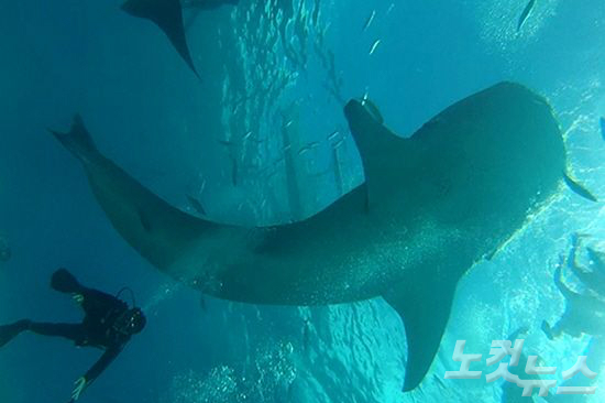 세부의 바다속에서 체험하는 오슬롭투어를 통해 만나는 고래상어는 대자연의 감동을 느끼게 해준다(사진=세부다이어리 제공)