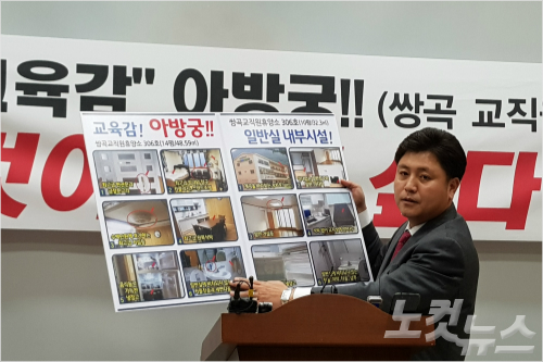 이 의원은 이어 "김 교육감의 호화 밀실 무료 이용이 청탁금지법 위반에 해당하는지 가려줄 것을 국민권익위원회에 요청하겠다"고 말했다.