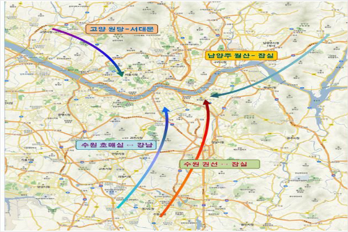 국토교통부는 3일 "지난달 30일 여객자동차운송사업 조정위원회를 열어 광역급행버스 4개 노선(고양 원당↔서대문역, 남양주 화도읍↔잠실역, 수원 권선↔잠실역, 수원 호매실↔강남역)을 신설했다"고 밝혔다.