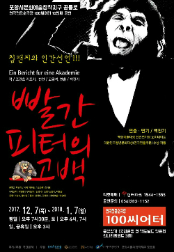 꿈틀로의 연극 전용 소극장인 100씨어터에서도 오는 7일부터 한 달간 '빨간 피터의 고백'(연출·연기 백진기)이 관객들과 만나게 된다.