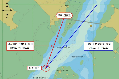 명진15호는 3일 오전 4시 30분 인천 GS부두를 출발한 이후 줄곧 인천VTS 관제 대상에 있다가 오전 6시쯤 영흥도 북쪽 1km 지점을 지나면서부터는 인천VTS 관제구역을 벗어났다.
