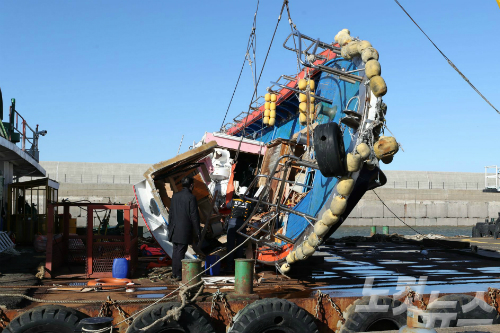4일 오후 인천시 중구 인천해양경찰서 전용부두에서 해양경찰 등 관계자들이 낚싯배 선창1호를 현장감식하고 있다. (사진=이한형 기자)