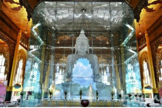 로카찬다 파고다의 불상은 세계 최대 규모의 옥불로, 손상을 막기 위해 유리 상자 안에 보관되어 있다. (사진=자유투어 제공)