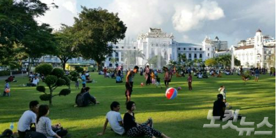 동방의 정원 도시인 양곤 시내에선 휴식을 즐기고 있는 많은 사람을 만날 수 있다. (사진=자유투어 제공)