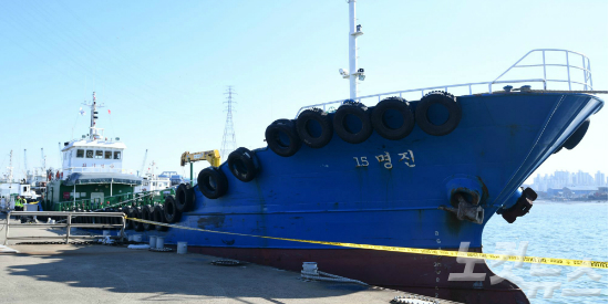 지난 3일 인천 영흥도 앞바다에서 낚싯배 선창1호를 들이받아 13명의 사망자를 낸 급유선 명진15호. (사진=이한형 기자)