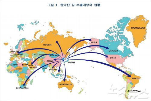 현재 한국산 김은 식품산업의 반도체로 불리면서 세계 100여 개국으로 수출되고 있다.