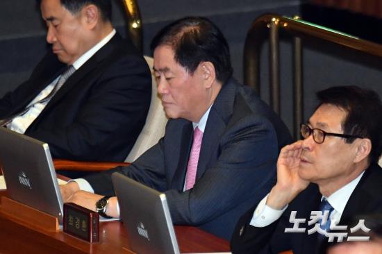 8일 국회 본회의에 박근혜 정부 시절 국가정보원으로부터 특수활동비를 받았다는 의혹으로 검찰조사를 받은 최경환 의원(가운데)이 참석하고 있다.